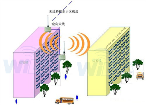 随着信息化社会的飞速发展,伴随着Internet 的迅速推广和发展,加上掌上电脑和笔记本等移动智能终端的广泛使用,人们对Internet的依赖越来越大,并开始追求对Internet随时随地的便捷接入。作为人们的活动中心-住宅小区,其智能业务的需求也在日益增长,宽带小区的建设已成为电信设备厂商、网络营运商甚至房地产商们关注的焦点。住宅小区一般物理分布分散,环境复杂,通讯的距离较长,若全部使用有线接入,则存在布线困难、施工不便、费用高、周期长等问题。根据上述特点,提出了采用无线宽带接入Internet方式。采用无线方式,无须布线,架设方便,运行、维护成本低,周期短。楼内居民不用破坏建筑结构和家居装潢,用户通过无线终端设备上网,台式机也好、手提电脑、掌上电脑也好,只要接上一块无线终端设备,楼内居民就可随时随地享受网上冲浪的乐趣。不必顾忌自己家的网络线的长与短,无论是在床上还是户外,哪怕是在卫生间,上网都将变得和随身听一样方便。